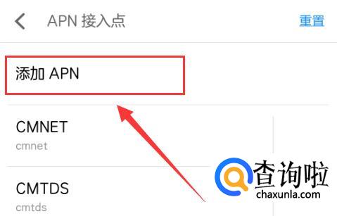 接入点已有默认入口,我们点击“添加APN”