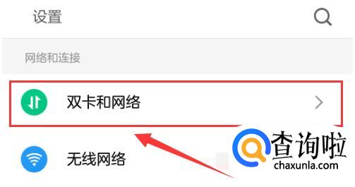 在设置页面当中,点击“双卡和网络”,进入“网络设置”