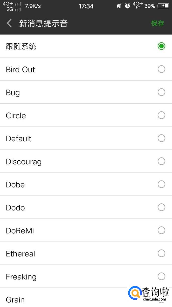最后点击新消息提示音,选择一个自己喜欢的声音,点击右上角的保存即可。