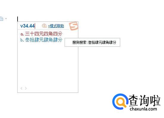 输入“V+小数数字”,将会转换成相应的大小写金额。