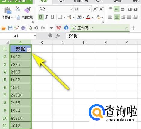 看表格中“数据”这里显示出一个筛选三角按钮。