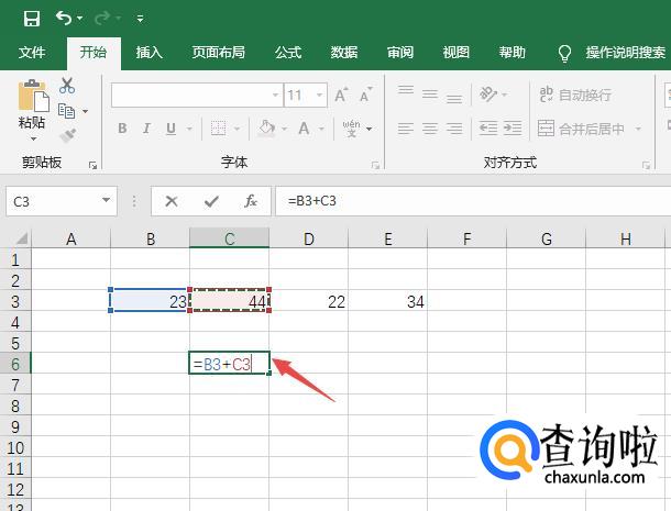 然后我们输入=B3+C3,这是个加法公式,是比较简单的,然后按回车键;