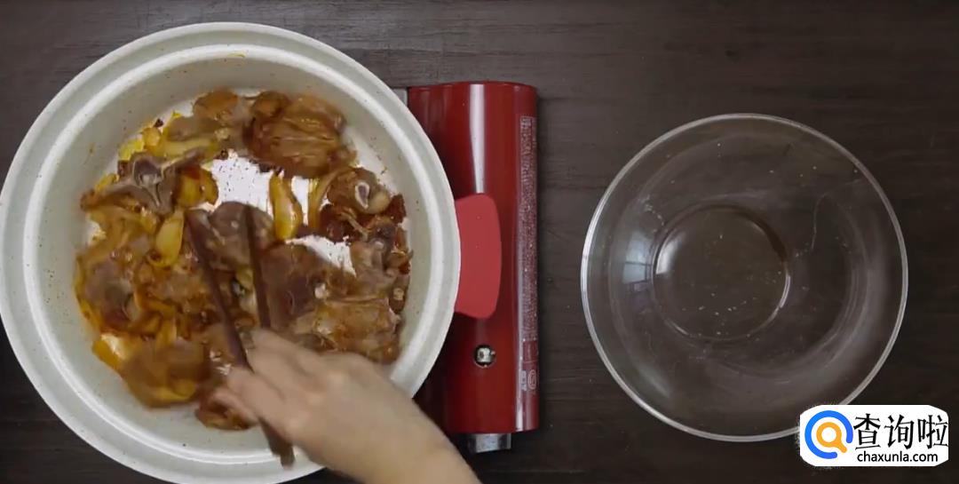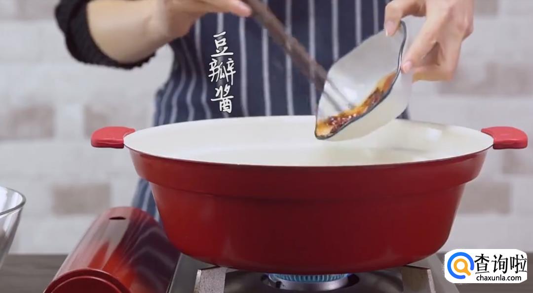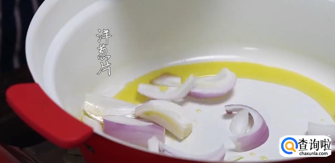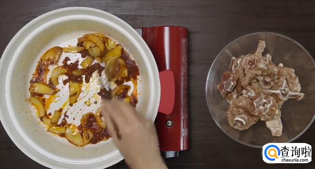 热锅起油,下洋葱,豆瓣酱翻炒爆香。