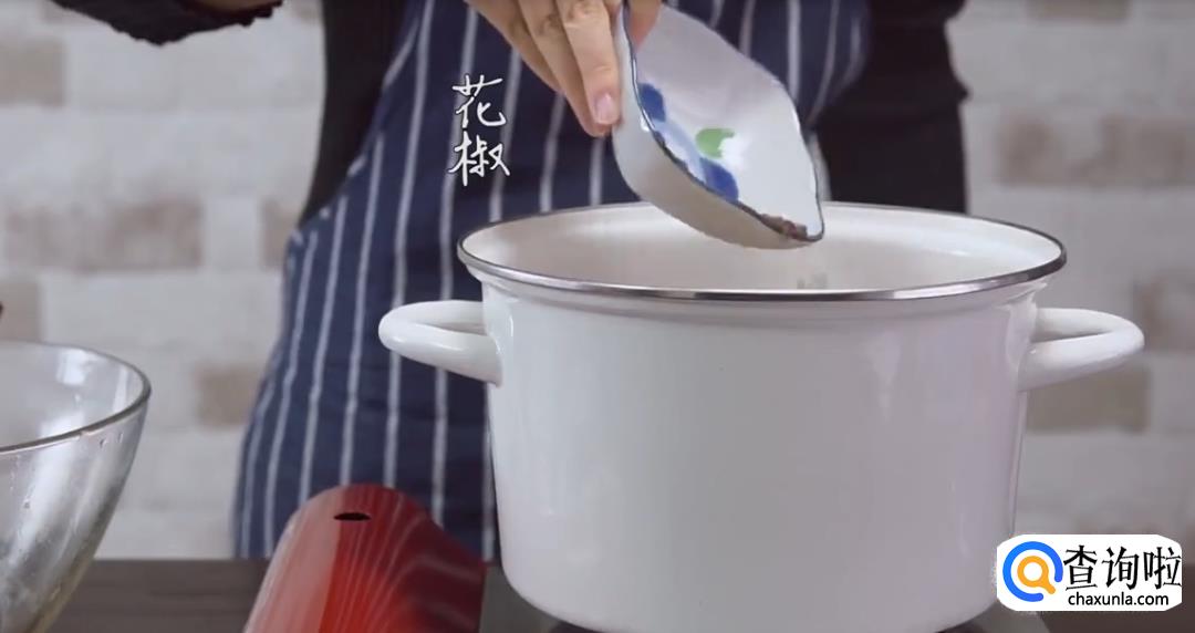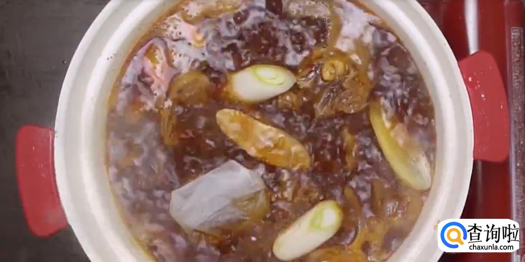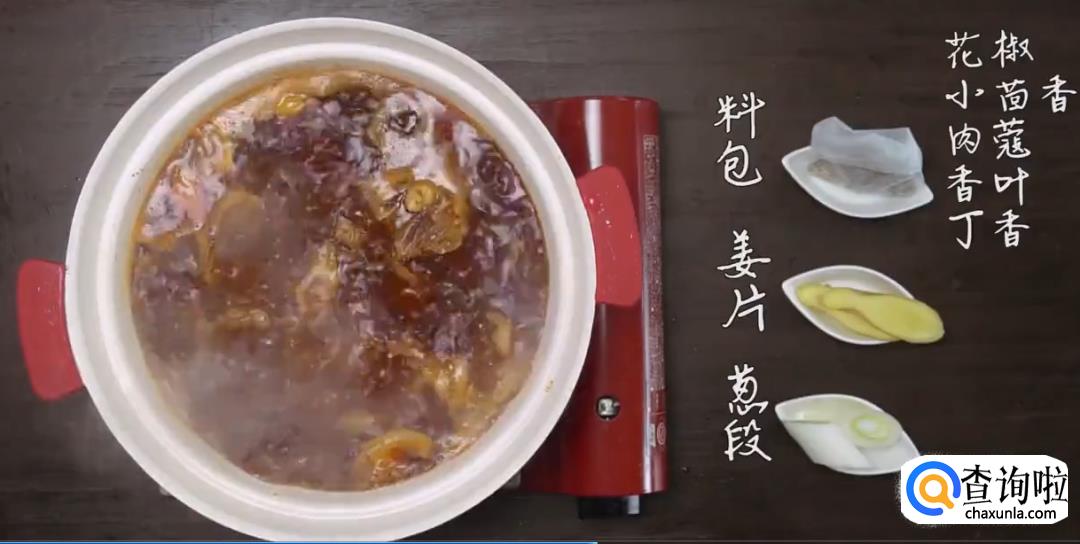 倒入适量温水,和香料包,姜片,葱段一起大火煮开后,盖上盖子焖煮1小时。