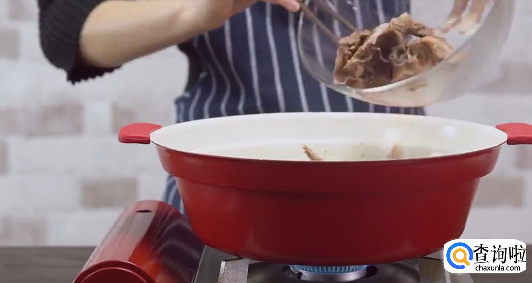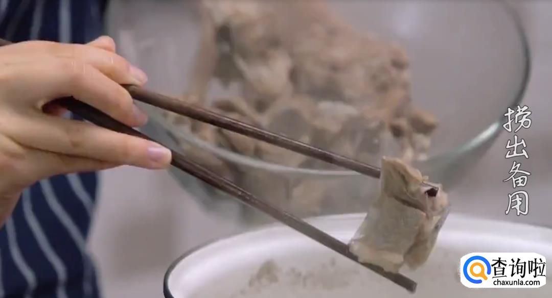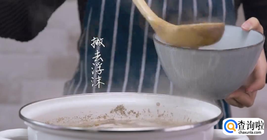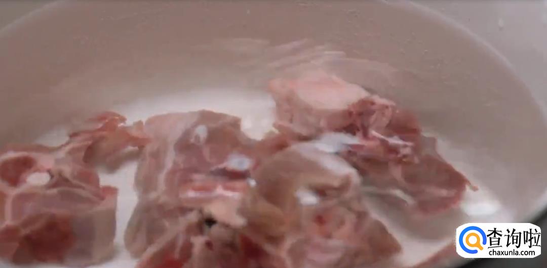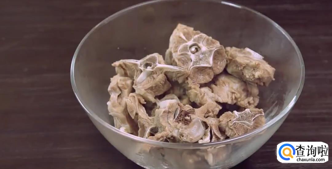 盖上盖子大火煮开,撇去浮末,捞出羊脊骨沥干。