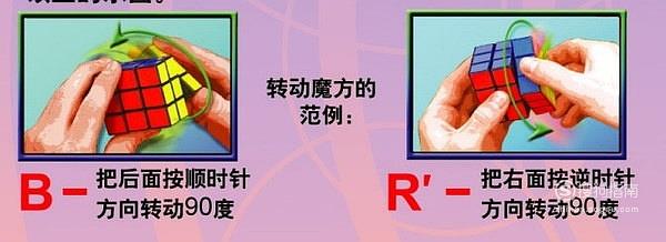 然后破解功略里会用字母来说明要转动的1层或1面,以及方向:例如:R(代表右面顺时针转90度),R`(代表右面逆时针转90度),R2(代表右面顺时针转2次90度)。