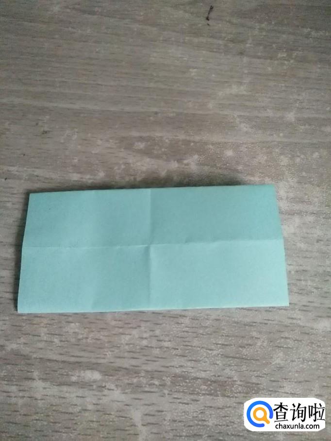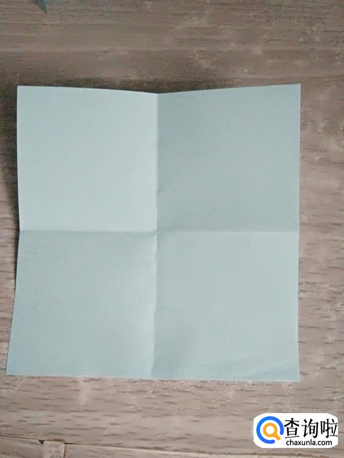 首先找一找正方形的彩纸,然后对边对折成两个全等的小长方形,然后再次对折呈正方形,接着打开刚才的步骤,然后一边沿着中线对折,另一边也沿着中线对折,如图