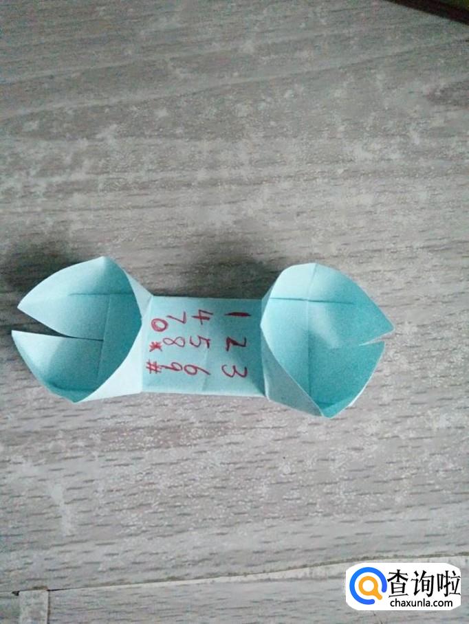 然后再翻转,分别把两边部分打开提起来,最后在给电话标上数字。这样一个彩纸小电话就折好啦,是不是很简单,很心动啊,开来动手试试吧。如图