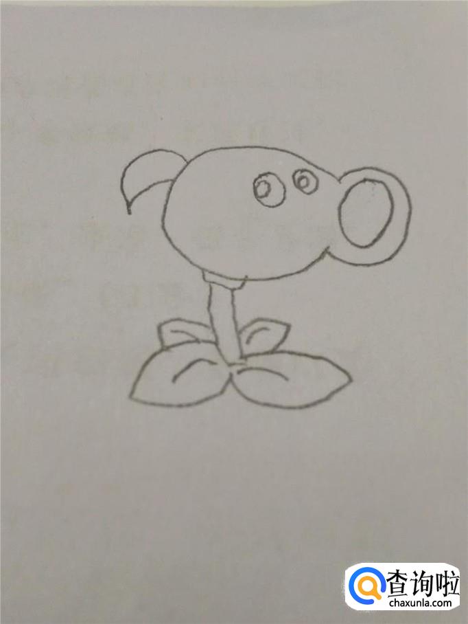 在嘴的右边画一个圆形,表示射出去的一个豌豆。到此,轮廓就画完了。