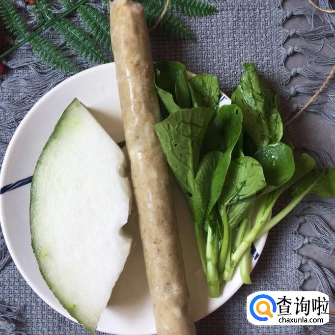 首先我们要准备好适量的冬瓜,鱼卷和青菜,如下图所示。关于冬瓜的选择,小编建议大家最好选择那种老冬瓜会比较好。而鱼卷,最好选择去那些老字号的店铺购买,那里面所卖的鱼卷才地道。