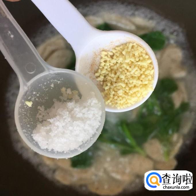然后往锅中加入适量的盐巴和味精,小煮片刻就可以出锅了。