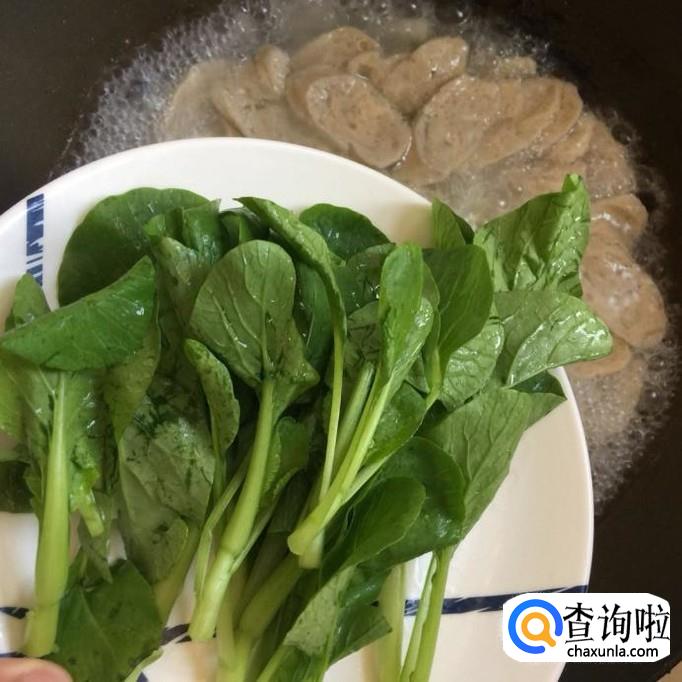 接着把青菜倒入锅中煮两分钟,如下图所示。