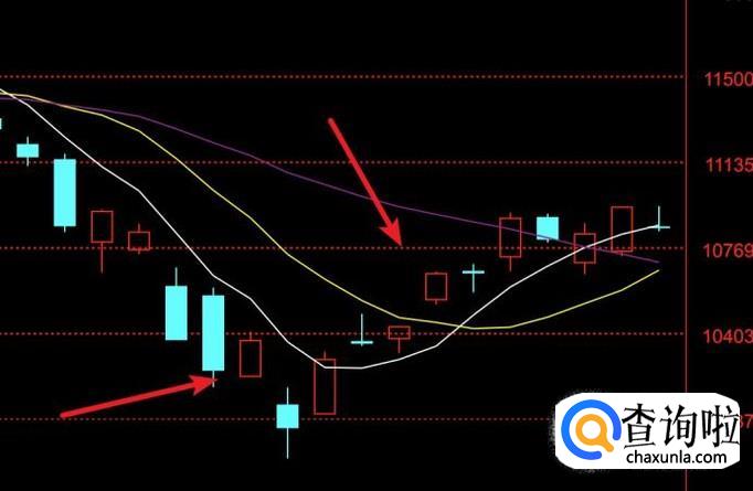从左上角上我们可以看到,白线代表的是MA5,黄线代表的是MA10。