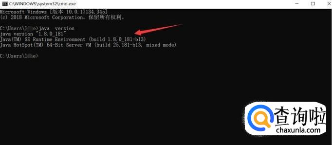 在打开的窗口内输入java -version,查看安装Java的版本号
