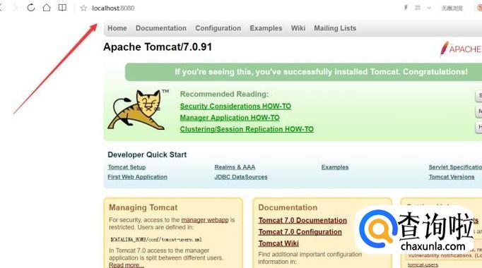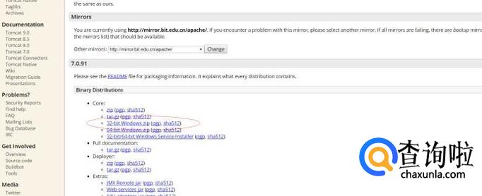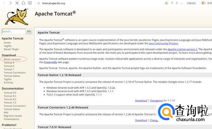 在浏览器地址栏中输入http://tomcat.apache.org/,访问apache官网获取信息