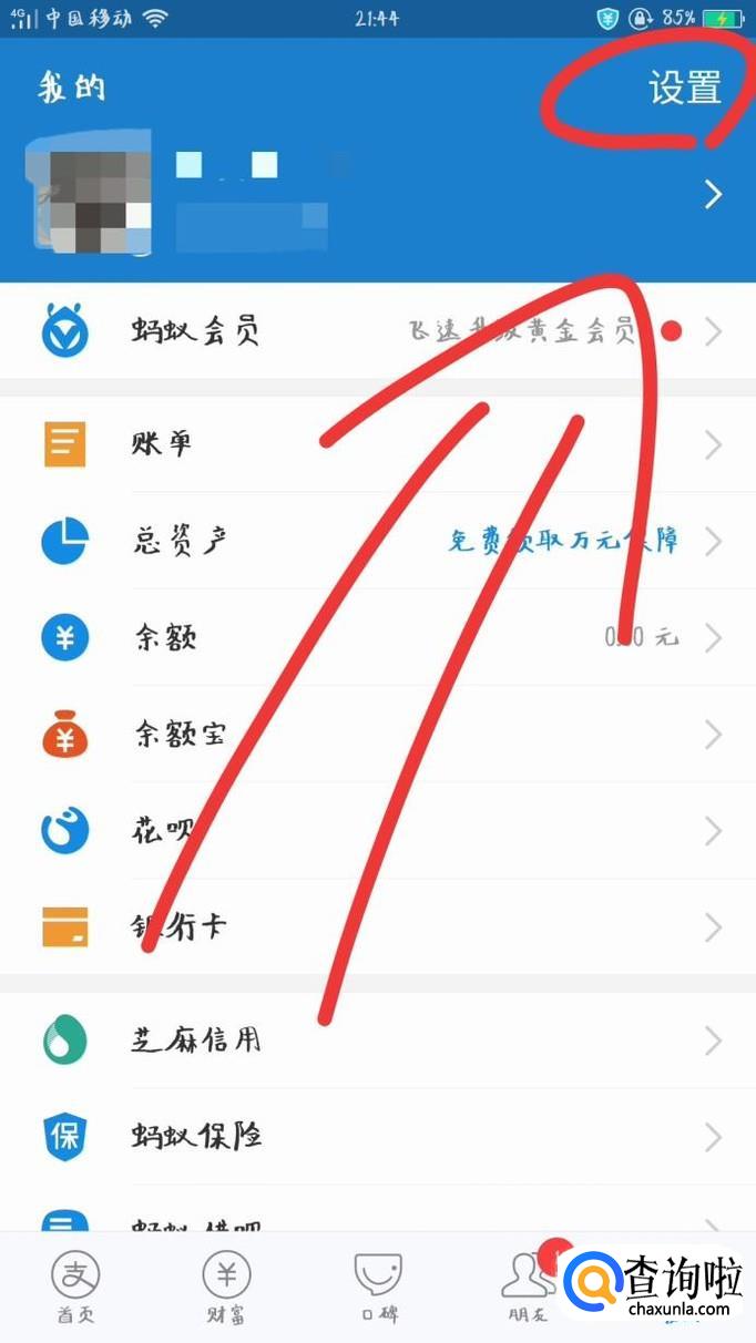 在个人账号信息界面,点击右上角“设置”。
