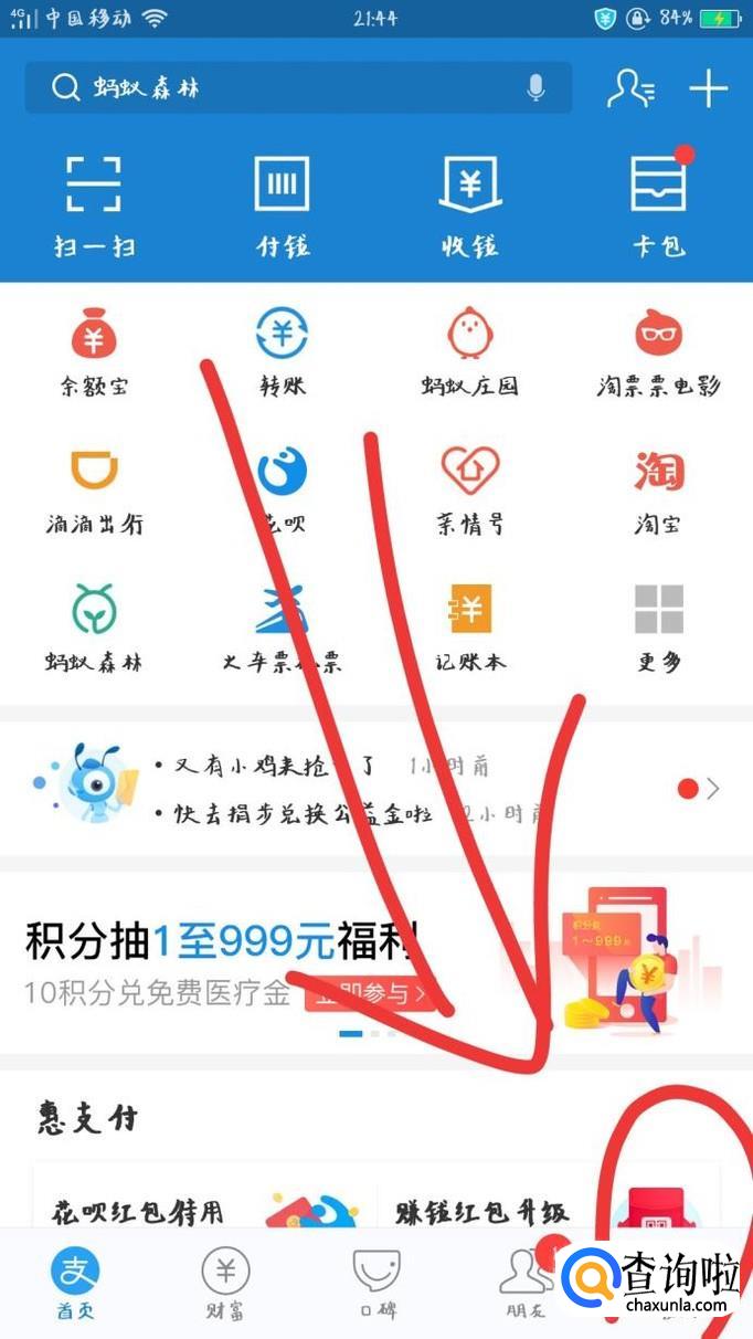 进入支付宝软件首页,点击右下角“我的”选项。