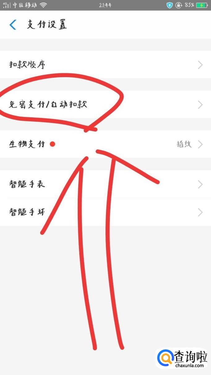点击“免密支付/自动扣款”选项,选择需要关闭的选项即可关闭免密快捷支付。