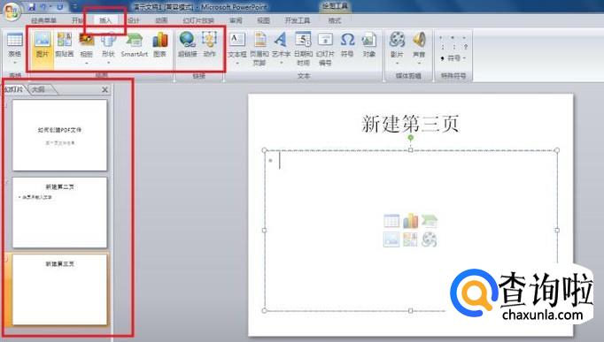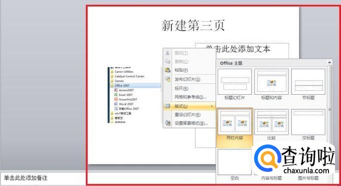 添加下一页时,在左侧“幻灯片”栏右键,选择“新建幻灯片”。