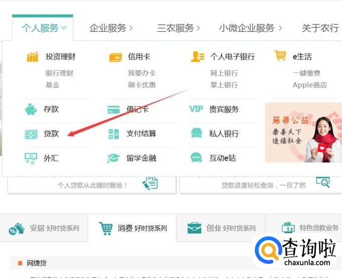 然后在个人服务中找到贷款,然后点击进入,如下图。
