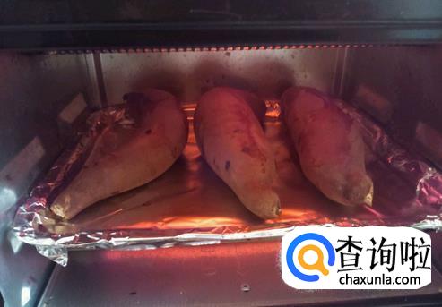 上面都怎么好了之后,就把红薯放好在烤盘上放进烤箱中。