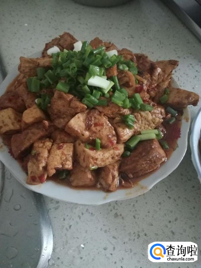 味道调好后,关火后将做好的豆腐装入盘子中,然后放上切好的葱花,就可以食用啦。
