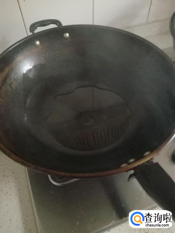 接着将锅洗干净,烧大火将锅烧干,接着倒入清油,烧小火将锅里的油烧滚。