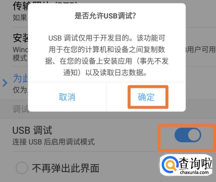 用USB数据线连接电脑和手机之后,在手机上提示USB连接模式,打开“USB调试”