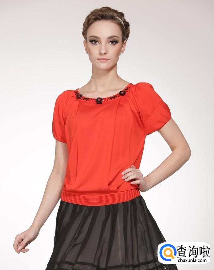 橘红色短袖配黑色短裙。橘红色和黑色的搭配很中规中矩,任何颜色搭上黑色都不会让人感到突兀。