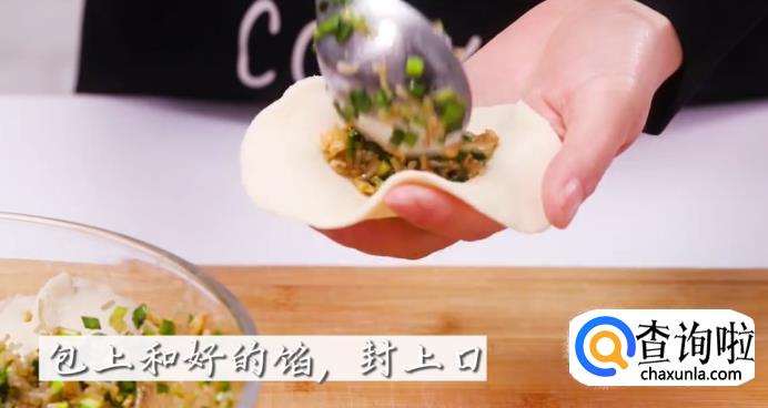 用面皮包上刚才和好的韭菜鸡蛋馅,然后封上口。
