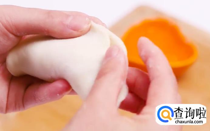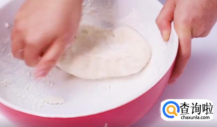将面粉揉成表面光滑的面团,然后放在一旁醒半个小时,再切成小段,擀成面皮。