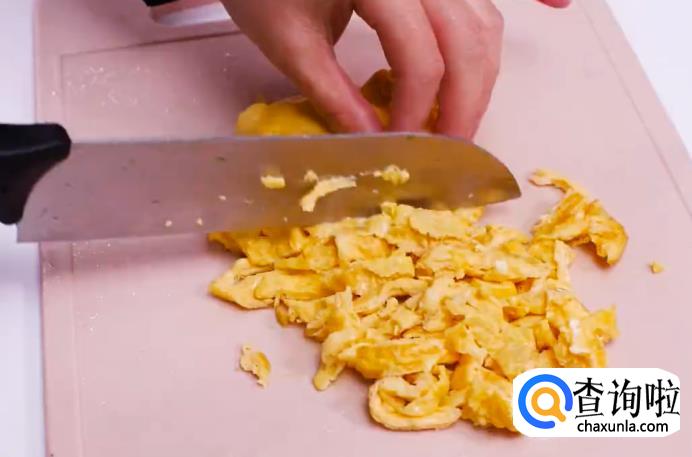 捞出后,将蛋饼切成碎块。