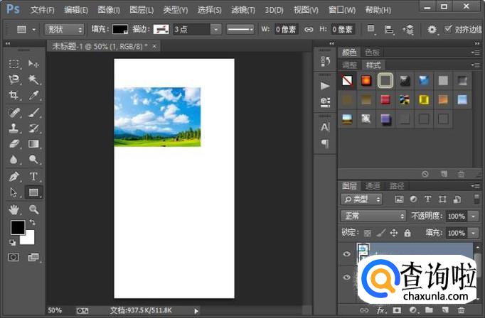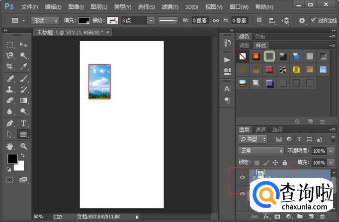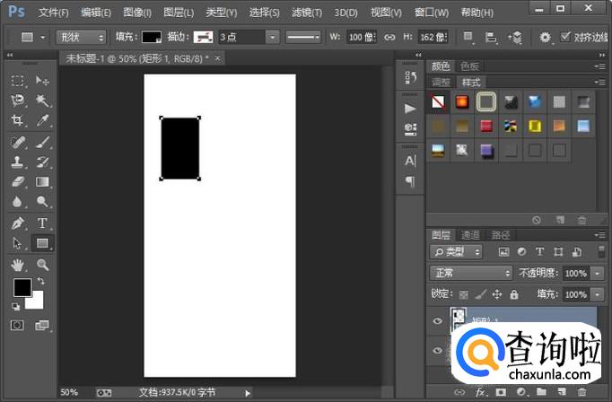 接下来我们选择矩形工具,然后画出一个如图所示的矩形。接着我们给这个矩形添加一个描边效果。