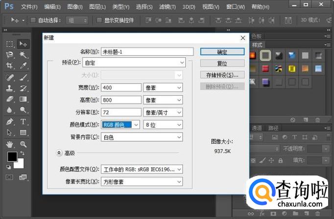 打开电脑里面的photoshop软件,然后新建一个如图所示的画布。