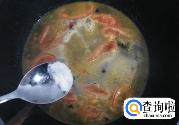 放入西红柿翻炒2分钟,然后加入2碗水后依次放入生抽、盐和少许糖调味。