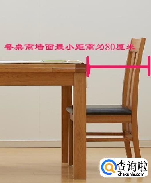 餐桌椅的摆放:餐桌靠近墙面的最小距离为80厘米。