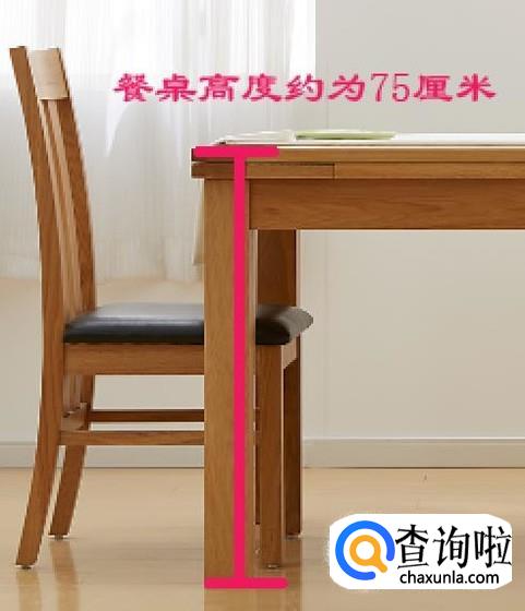 餐桌的尺寸:餐桌的桌面大小、形状可自行选择,一般餐桌高度约为75厘米。
