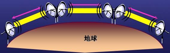 但是,微波波长很短,只有1毫米至1米。在传输信号的长途旅行中,它既不像长波那样,遇到障碍物时可以迈开“长腿”,翻山越岭;也不像短波那样,可以利用空中的电离层来回反射电磁波,实现远距离通信。微波具有近似光波的特性,像光线一样,传输路线是径直向前的,而且,它的反跳能力极强,一遇到阻挡物,就被反射回来。因此,微波只能在空中传播。大家知道,地球是圆形的,而微波只能视距传播,不能顺着地球的圆弧传播。也就是说,微波的传输距离只能限制在可以互相看得见的两点这样一个范围内。即使将发射天线架设在40米高的山上,微波也被地球的“大肚子”所阻挡,传输距离只有50多千米。