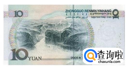 10元人民币纸币背面景观是:长江三峡-瞿塘峡夔门(重庆)。