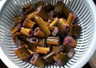 先将生黄鳝切断洗去黏液,放入篮中沥干水分。