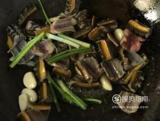 起锅烧油,待锅热放油,先放入配料炒香,再倒入黄鳝翻炒。