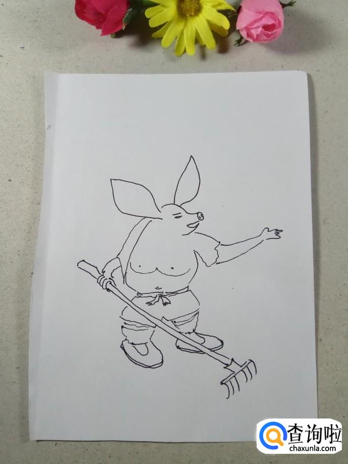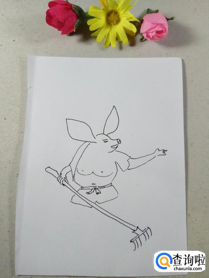 画出猪八戒身上穿的裤子,看来是夏天到了,猪八戒穿着一个短裤,更显出上身威猛无比。