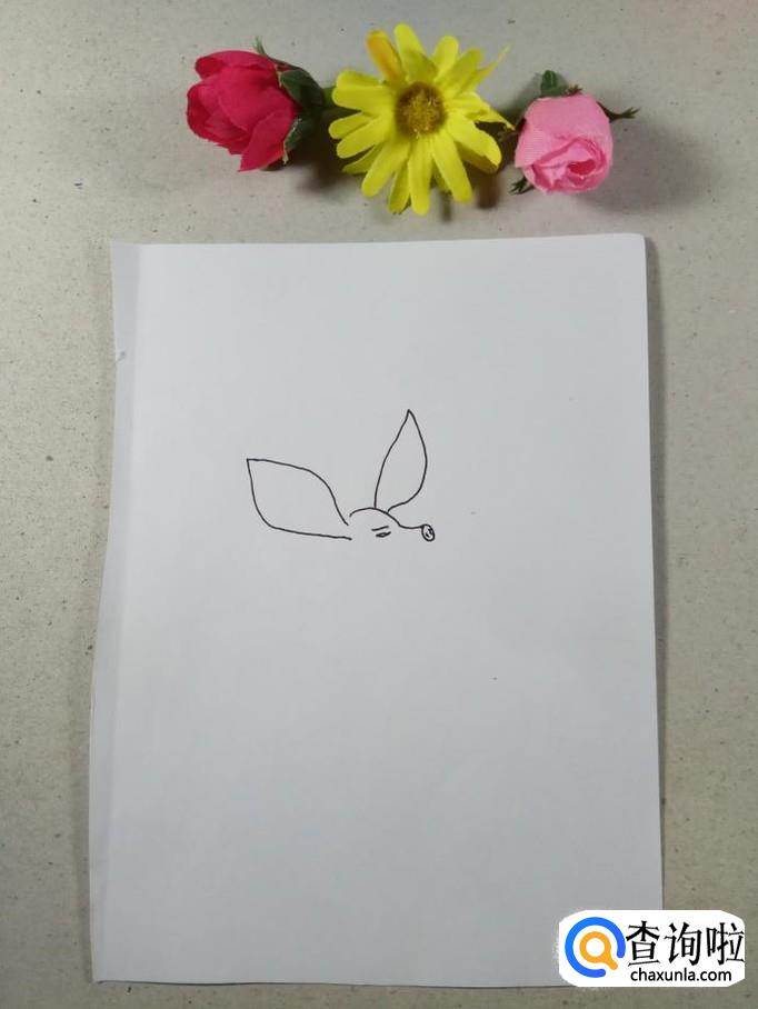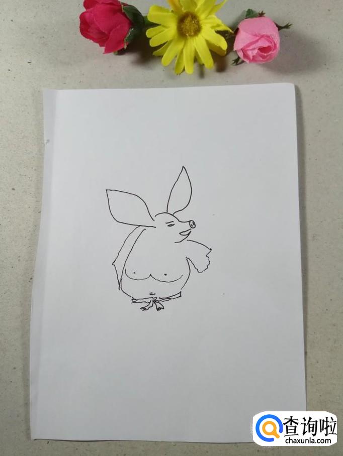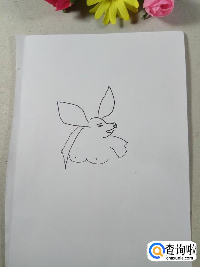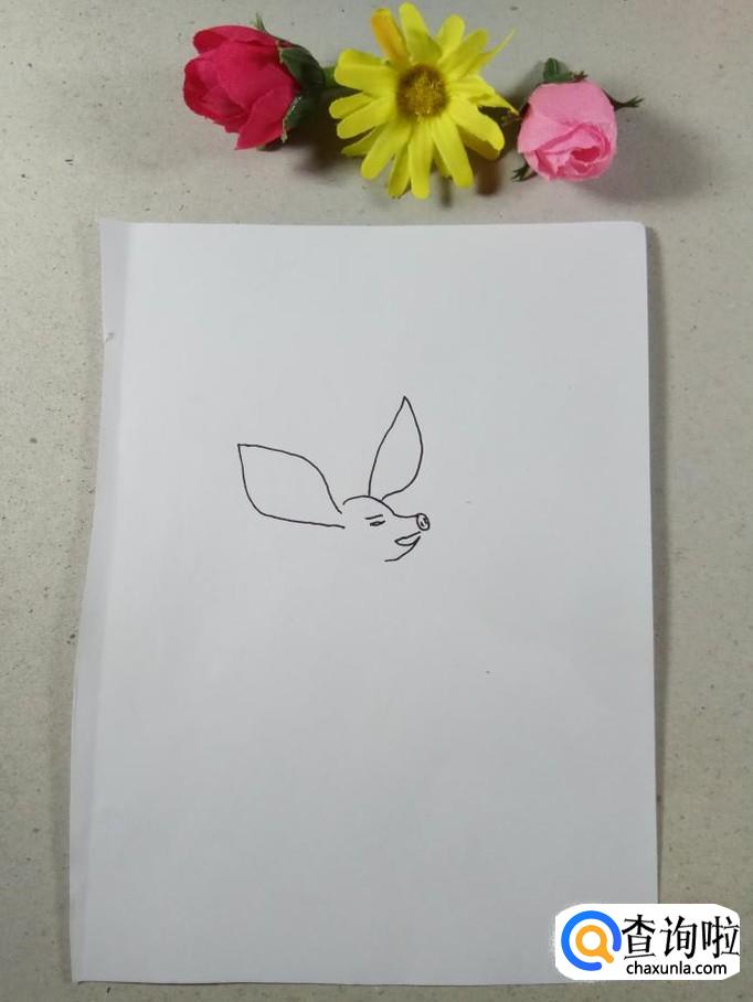 在白纸上用曲线画出猪八戒的头部轮廓和鼻子的轮廓,猪八戒的鼻子是非常有特征的,这一点可不能马虎。