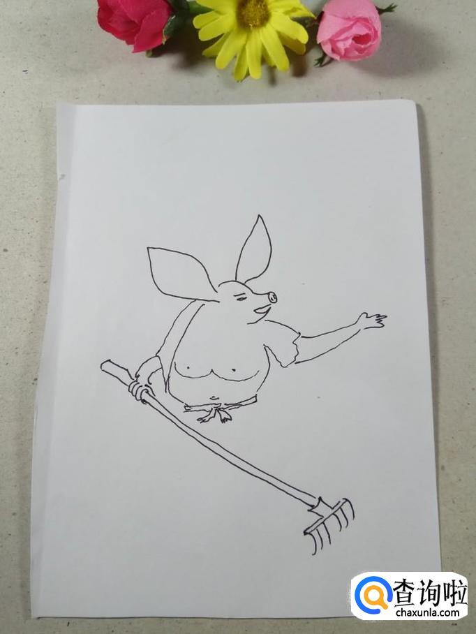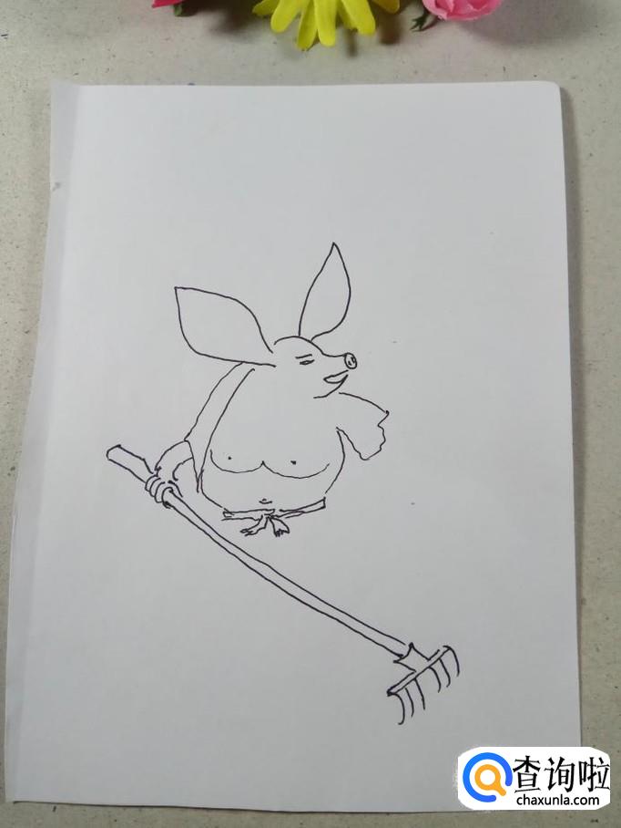画出猪八戒手中的工具,玉皇大帝钦赐的上宝沁金钯,没有兵器可不成,全靠兵器显神威。