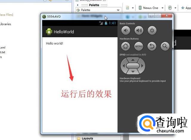 最后我们就可以看到ADT中自带的模拟器启动了,并且输出了程序中的信息,如下图所示