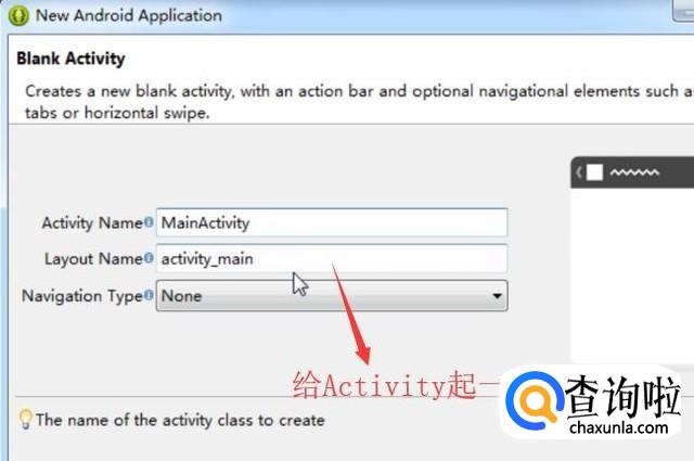 然后我们需要给Activity起名字并设置布局名称,如下图所示