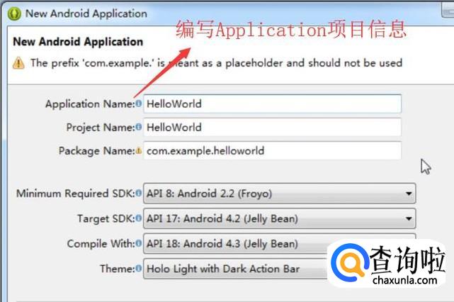 接下来在弹出的New Android Application界面中编写Application的项目信息,如下图所示