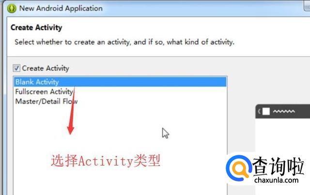 接下来会进入Activity类型选择界面,这里直接选择Blank Activity选项,如下图所示