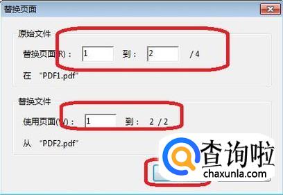 出现替换页面设置,假如我要替换前两页,则进行如下设置,替换页面的数量必须和被替换页面数量设置为相同。