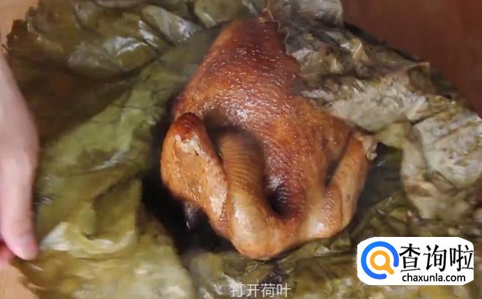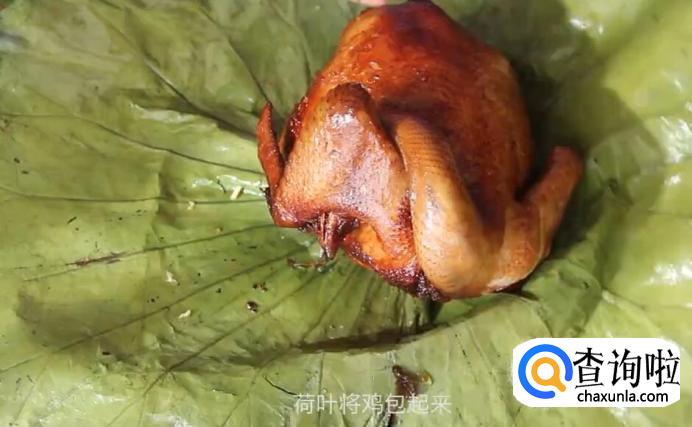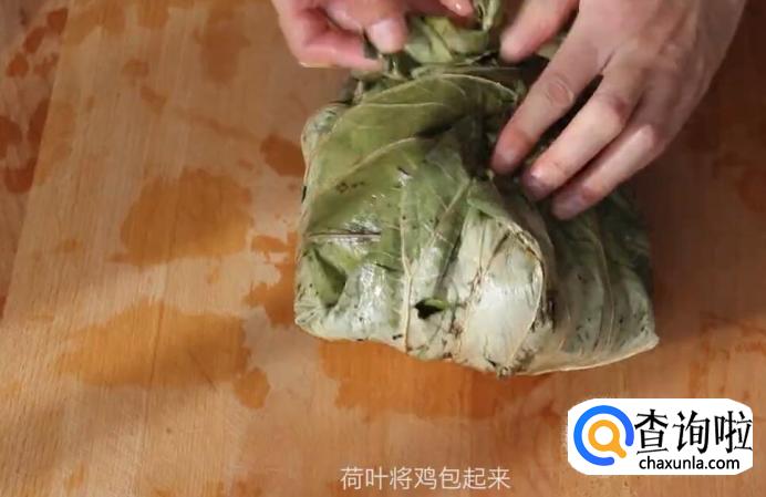 然后用荷叶将鸡包起来。
